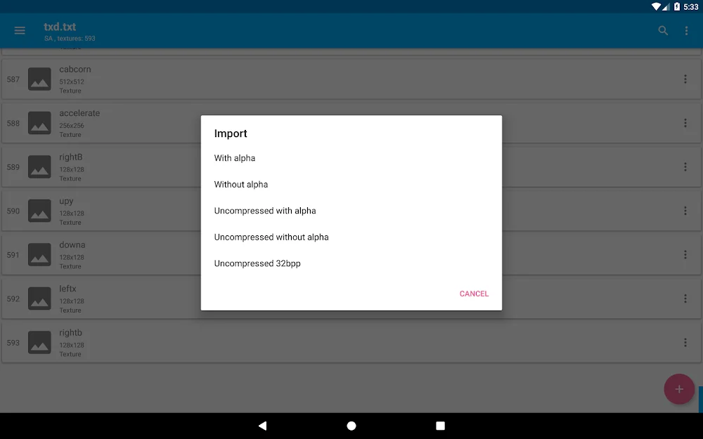 Edit dan kelola tekstur TXD dengan mudah di Android. TXD Tool APK 2025 menawarkan fitur tingkat profesional untuk kreator dan editor. Unduh sekarang untuk menyederhanakan alur kerja tekstur Anda!